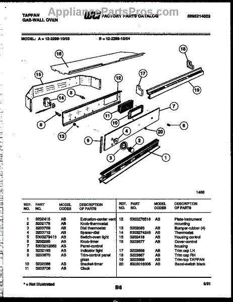 Parts for Frigidaire 12-2299-00-03: 02 - Control Panel Parts