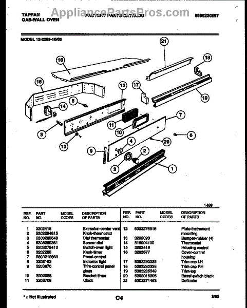 Parts for Frigidaire 12-2299-10-05: 02 - Control Panel Parts