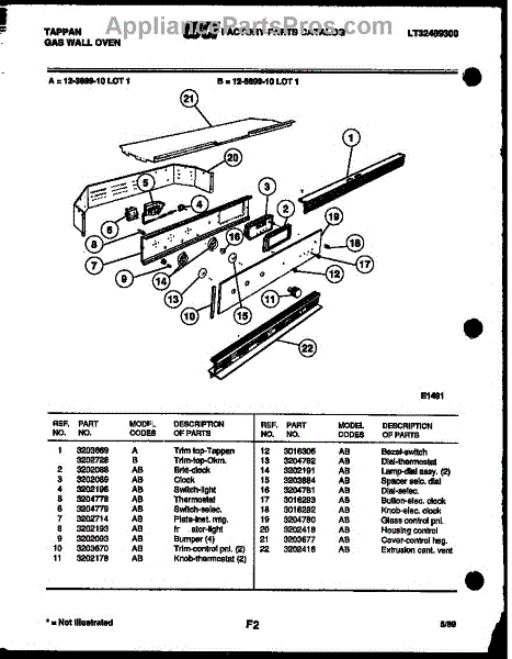 Parts for Frigidaire 12-3699-00-01: 02 - Control Panel Parts