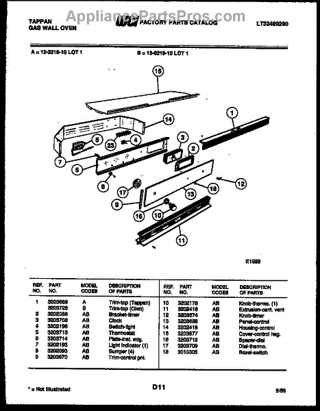 Parts for Frigidaire 12-6219-00-01: 02 - Control Panel Parts