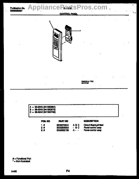 Parts for Frigidaire 56-2243-10-01: 02 - Control Panel Parts