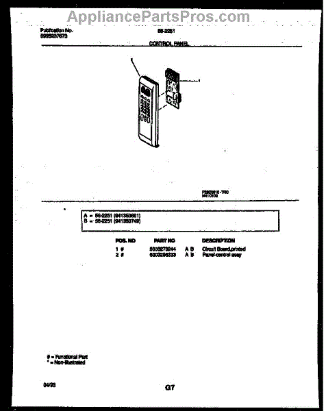Parts for Frigidaire 56-2251-10-04: 02 - Control Panel Parts