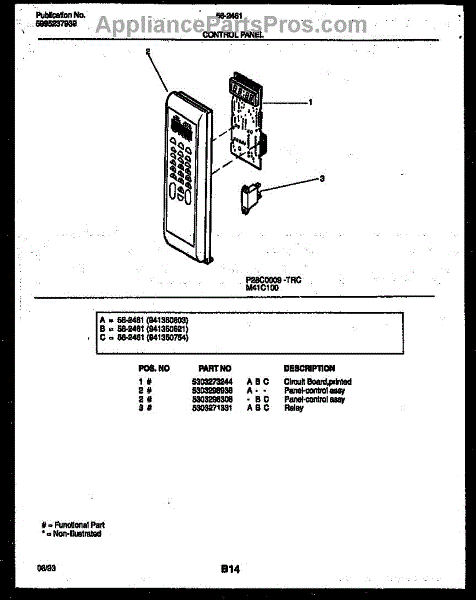 Parts for Frigidaire 56-2461-10-04: 02 - Control Panel Parts