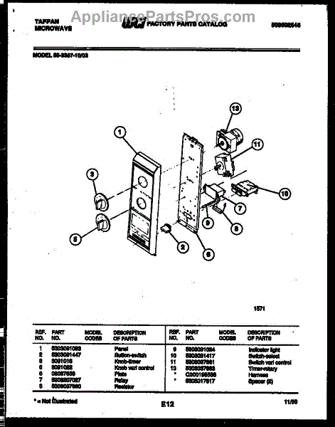 Parts for Frigidaire 56-3357-10-03: 02 - Control Panel Parts