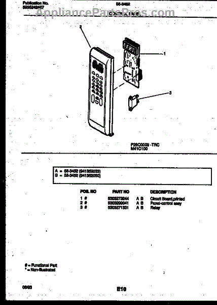 Parts for Frigidaire 56-3452-10-03: 02 - Control Panel Parts