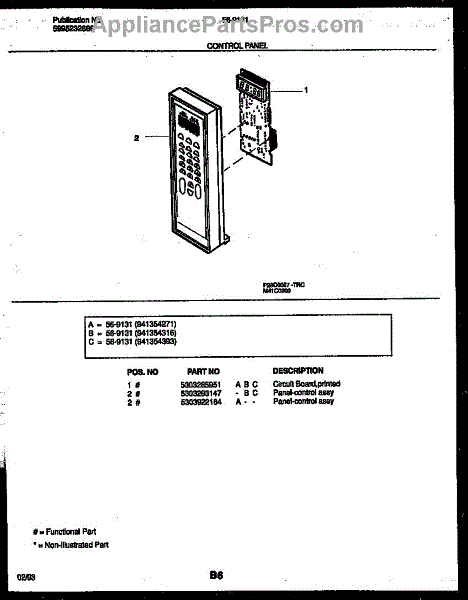 Parts for Frigidaire 56-9131-10-04: 02 - Control Panel Parts
