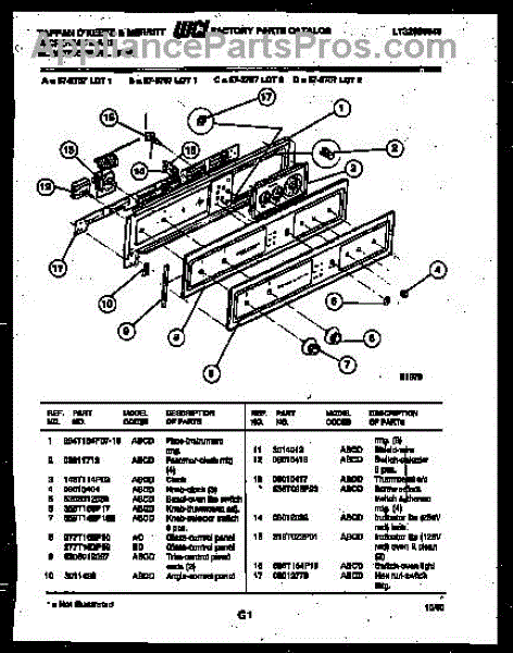 Parts for Frigidaire 57-6707-10-01: 07 - Control Panel Parts