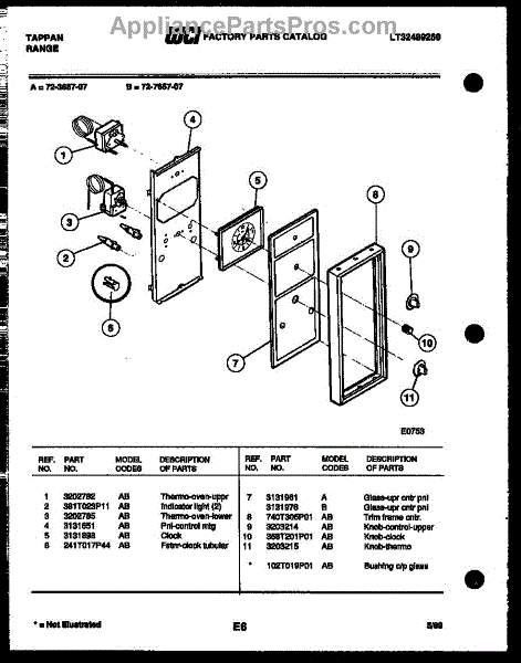 Parts for Frigidaire 72-3657-23-07: 06 - Control Panel Parts