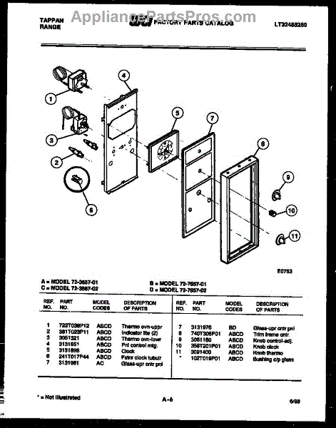 Parts for Frigidaire 72-7657-00-02: 06 - Control Panel Parts