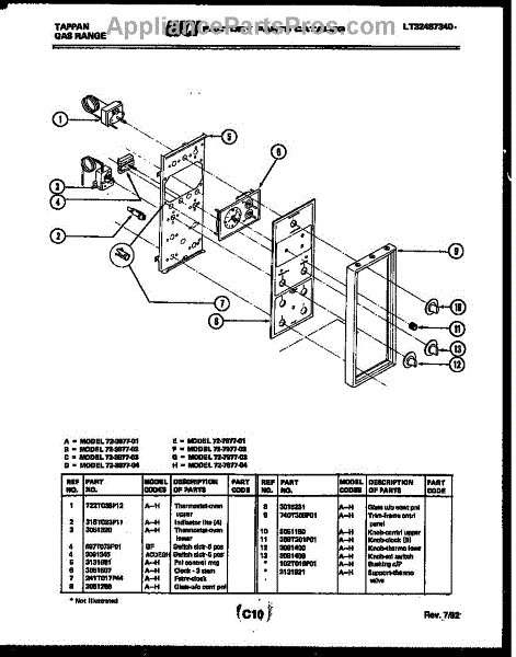 Parts for Frigidaire 72-7977-66-01: 08 - Control Panel Parts