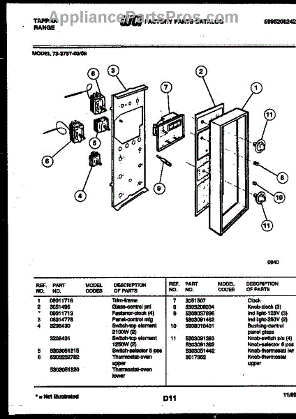 Parts for Frigidaire 73-3757-00-08: 02 - Control Panel Parts