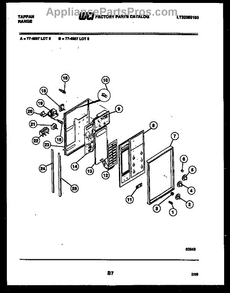 Parts for Frigidaire 77-4987-00-05: 02 - Control Panel Parts