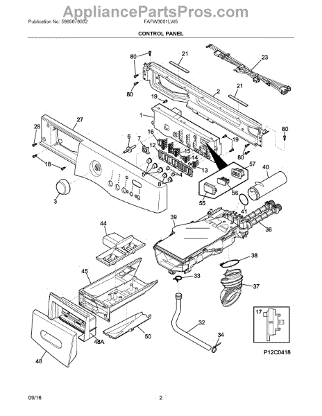 The Detergent Drawer is an OEM part for Frigidaire washing machines. It holds and dispenses detergent at the appropriate times during wash cycles. The drawer is designed with compartments to separate powder and liquid detergents for optimized cleaning. Causes of a bad detergent drawer can include leaks from cracks in the plastic material, malfunctions in the electronic components that control dispensing, or damage to the drawer itself. Symptoms of a bad Detergent Drawer include: