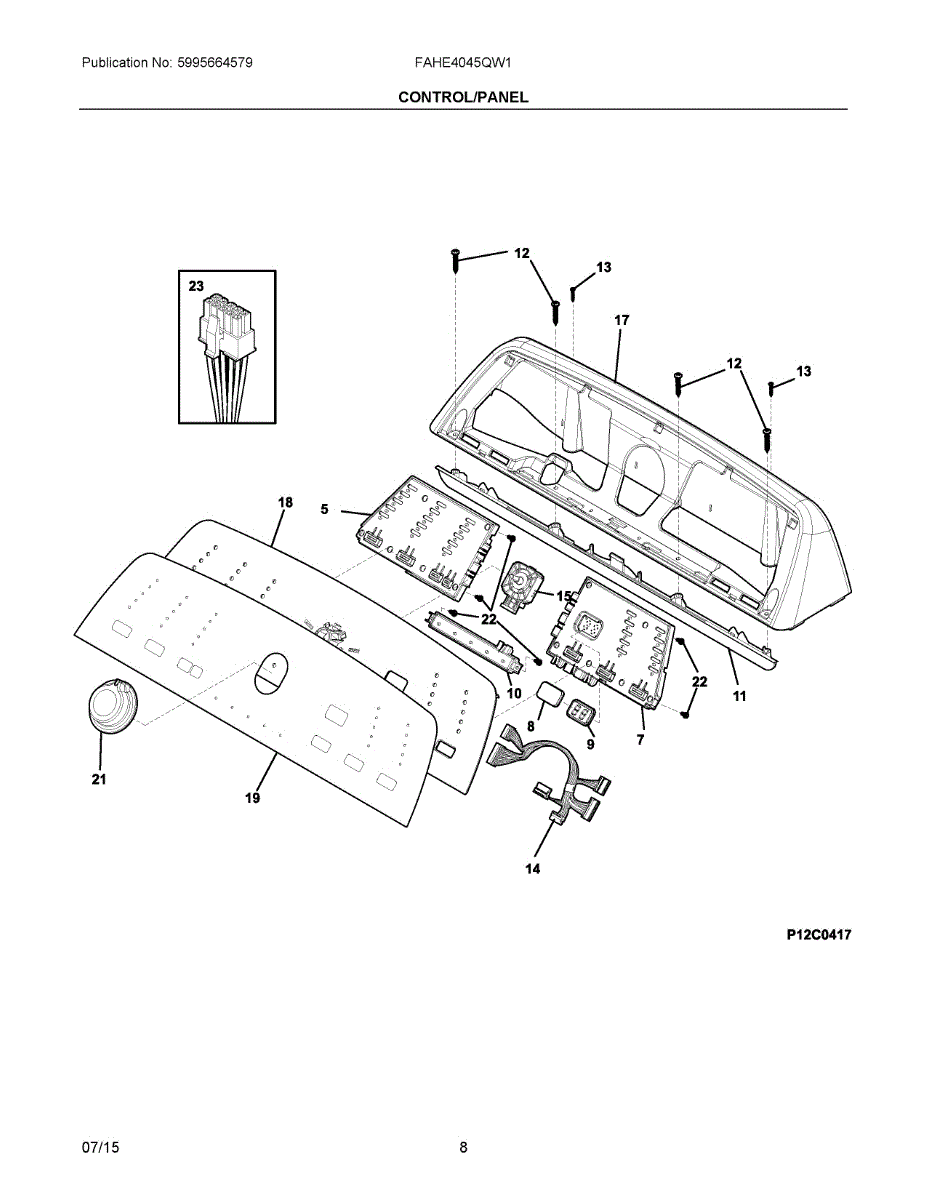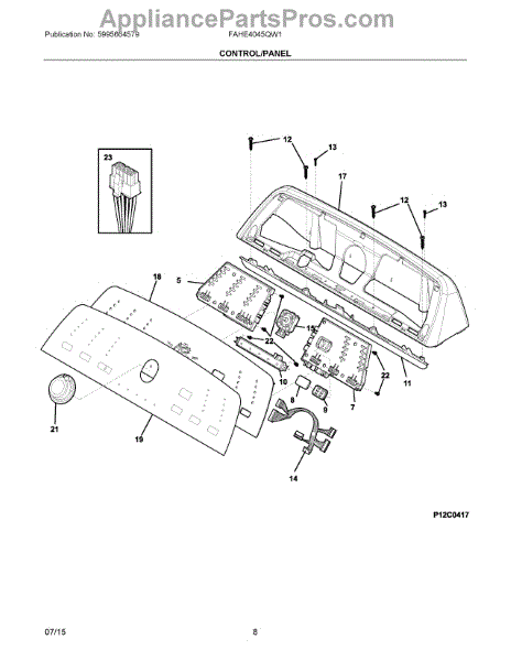 This wiring harness routes power and signals between the appliance's control components to restore proper electrical connections. It replaces a damaged or worn harness so controls and powered features can operate reliably. What it does: