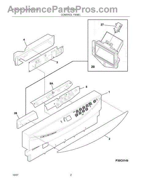 Parts for Frigidaire FDB1980RGC0: 03 - Control Panel Parts