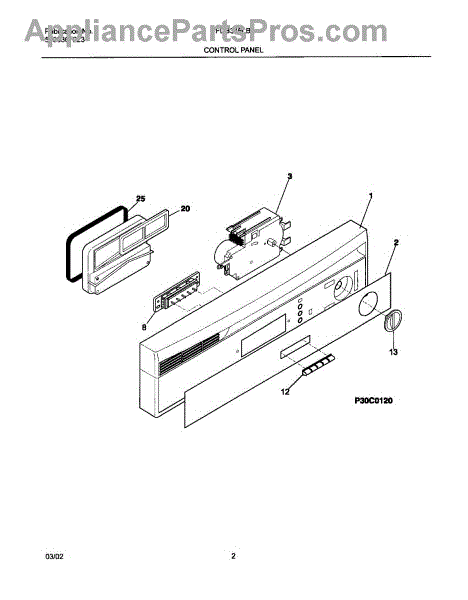 Parts for Frigidaire FDB345LBB0: 03 - Control Panel Parts
