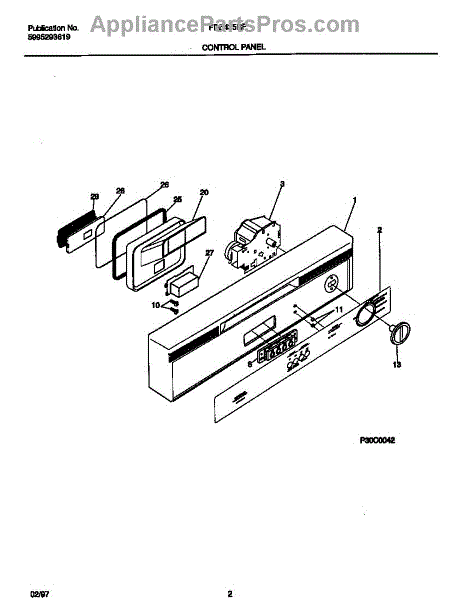 Parts for Frigidaire FDB435RFR2: 02 - Control Panel Parts