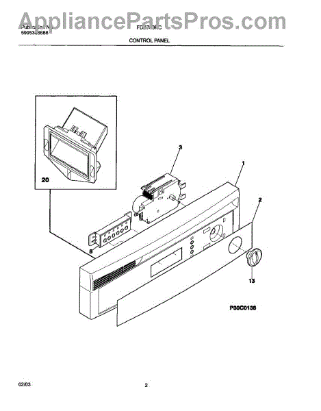 Parts for Frigidaire FDB740RCB0: 03 - Control Panel Parts