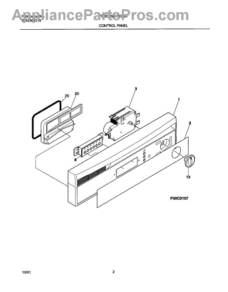 Parts for Frigidaire FDBC45BAS0: 03 - Control Panel Parts