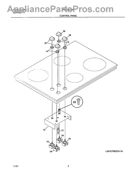 The Control Knob is an OEM replacement part for Frigidaire ranges and cooktops. It measures about 2-1/2 inches in diameter. It allows users to control the heat settings for burners or the oven, ensuring precise temperature adjustments during cooking. The knob is designed to fit securely onto the control shaft, providing a user-friendly interface for operating the appliance.