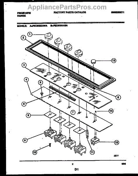 Parts for Frigidaire FEC9X8XABA: 02 - Control Panel Parts
