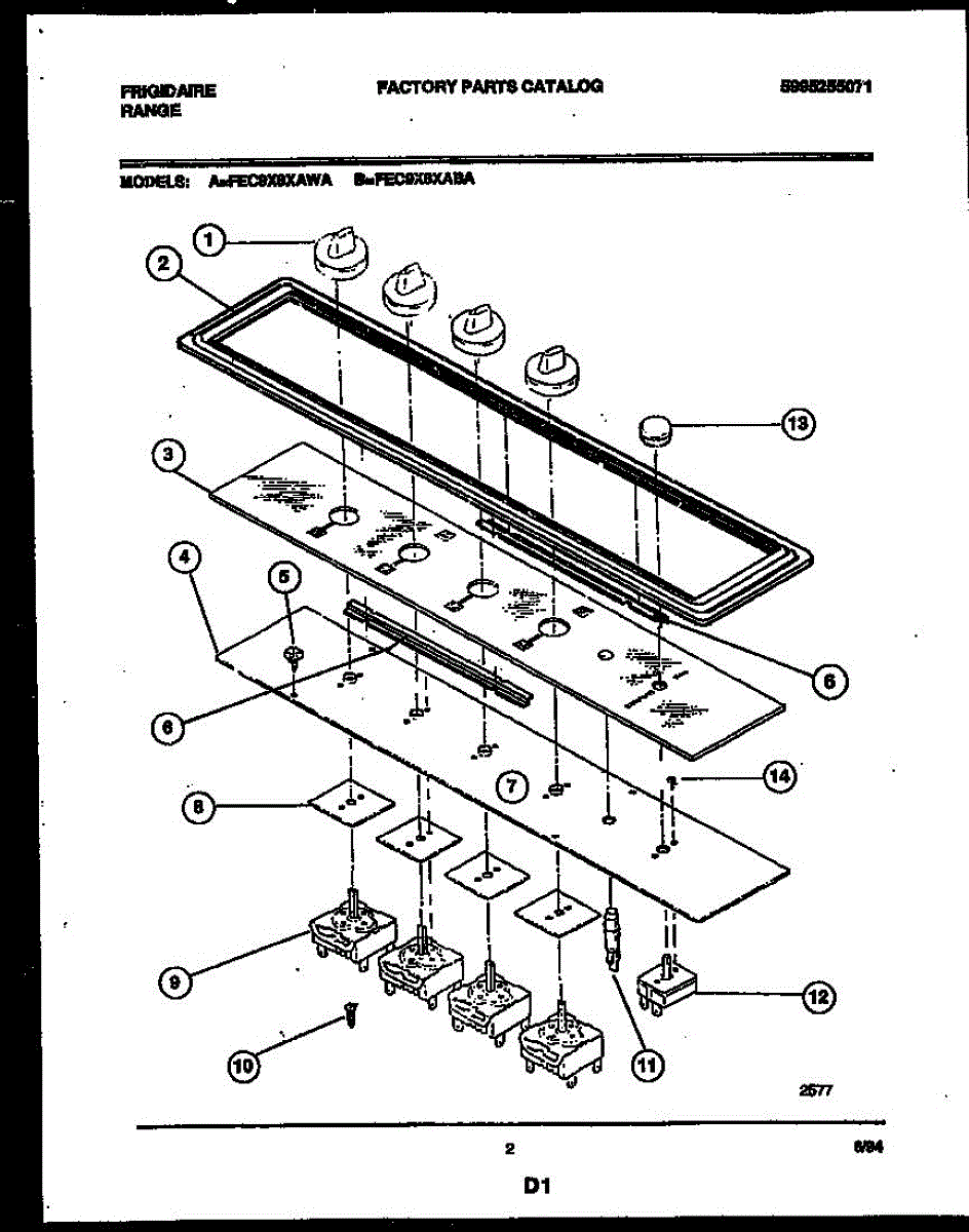 Parts for Frigidaire FEC9X8XAWA: 02 - Control Panel Parts
