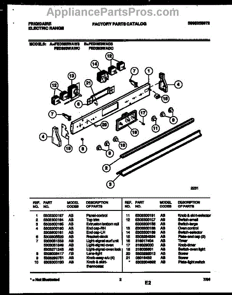 Parts for Frigidaire FED353WAD3: 02 - Control Panel Parts