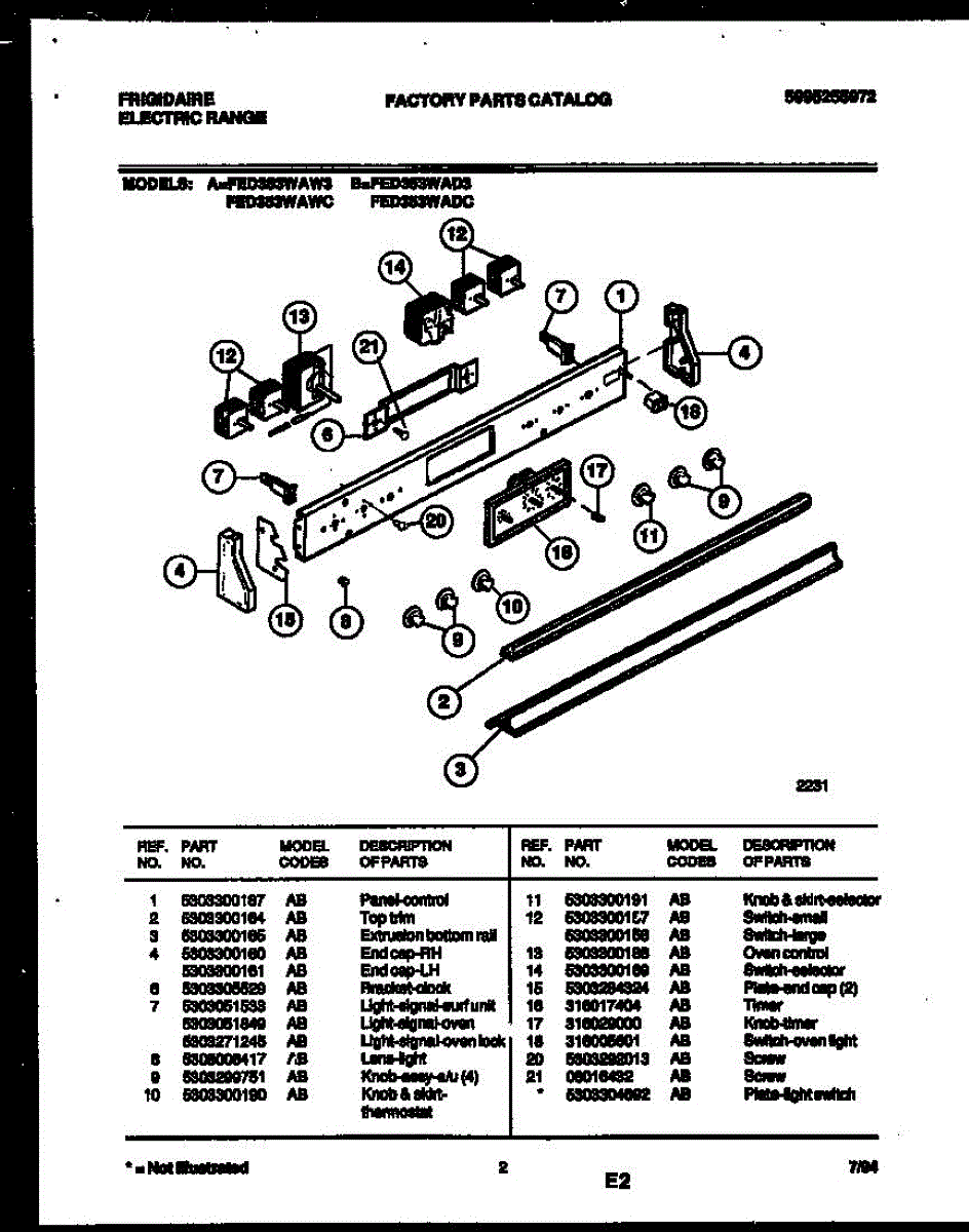 Parts for Frigidaire FED353WAWC: 02 - Control Panel Parts