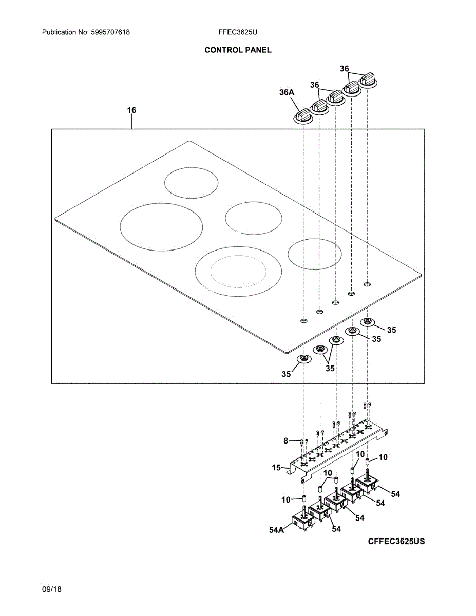 Burner not heating or stuck on? This surface element switch controls power to individual cooking elements. Moderate DIY repair requires lifting cooktop.