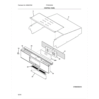 This control panel houses the oven/range user interface and provides the buttons and display used to select cooking modes, set temperatures and timers, and start/stop cycles. Replacing a damaged panel restores normal control access and readable indicators. What it does