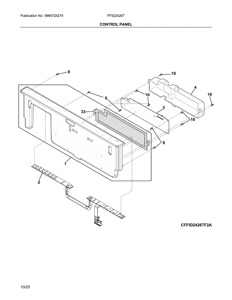 The User Interface Control Button Assembly is an OEM part for Frigidaire dishwashers. This component is essential for the seamless operation of the dishwasher, allowing users to interact directly with the appliance by selecting wash cycles, starting operations, and adjusting settings. The assembly includes a set of buttons that are connected to the electronic control board, ensuring that inputs are accurately registered and executed.