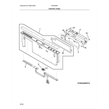 The Control Panel is an OEM part for Frigidaire dishwashers. Located at the front of the dishwasher door, the control panel features buttons and displays that allow for the selection and monitoring of wash cycles. Printed electronic circuits distribute input signals to initiate the appropriate cycle settings.