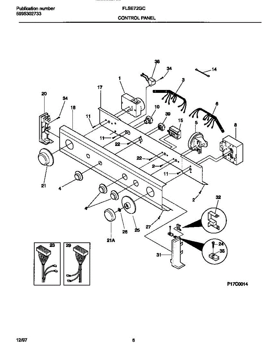 Control wiring harness for washer dryer combo units. Connects control panel to internal components. Replace if wires are frayed, damaged, or connector clips are broken.