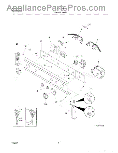 Control wire harness for washer dryer combo units. Connects control panel components including temperature switch. Replace if wires are damaged or frayed.