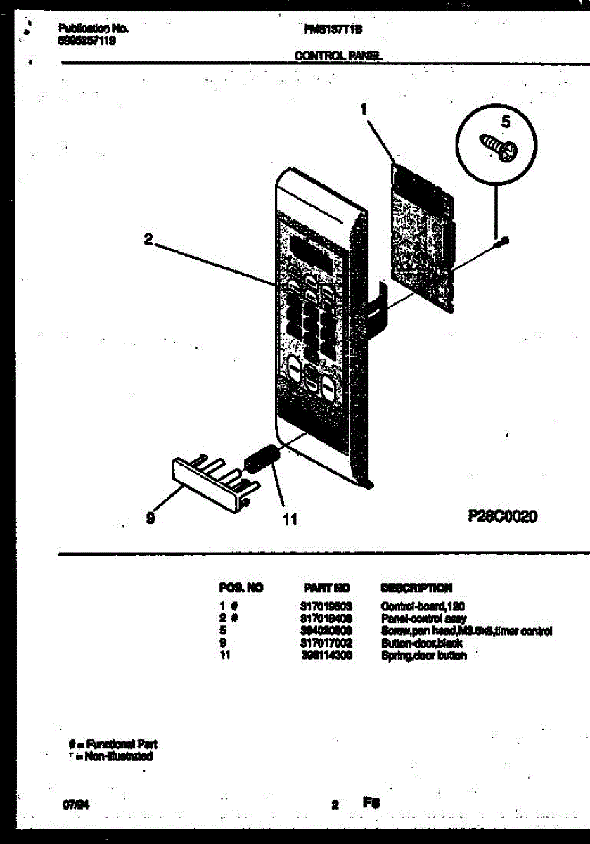 Parts for Frigidaire FMS137T1B1: 02 - Control Panel Parts