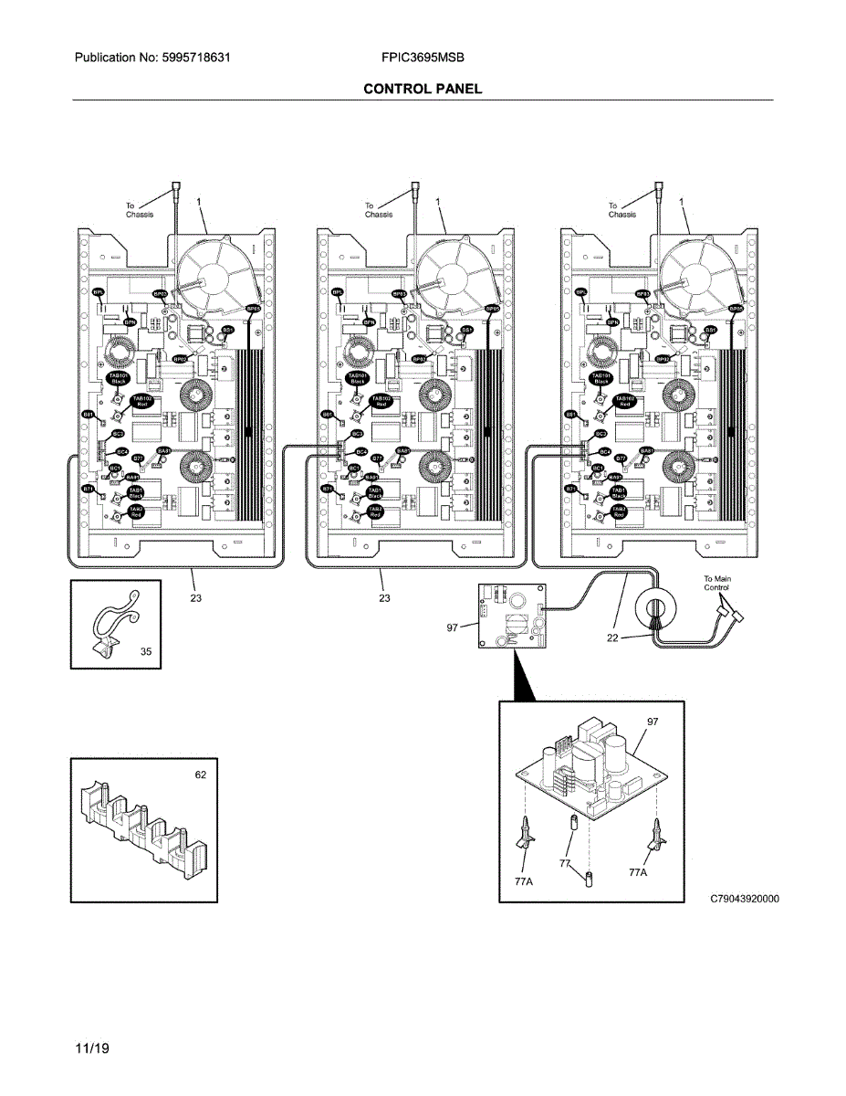Wire harness assembly for electric cooktops. Connects electrical components and controls. Replace if wires are frayed, damaged, or connections are loose.