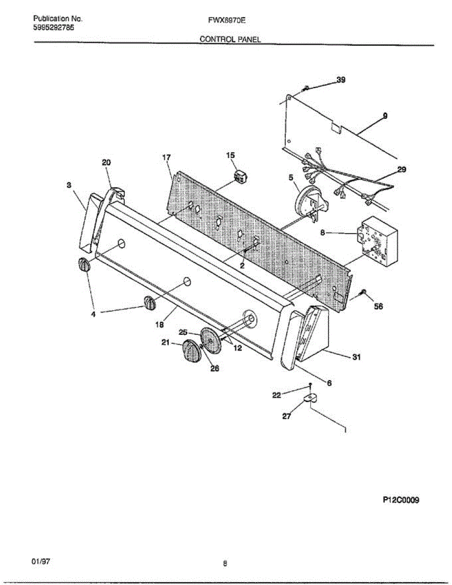 Control panel end cap for washers and dryers. Secures the control panel with locking tabs. Replace if cracked, broken, or tabs are damaged.