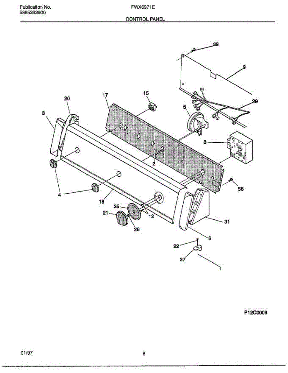 Control panel end cap for washers and dryers. Secures the control panel with locking tabs. Replace if cracked, broken, or tabs are damaged.