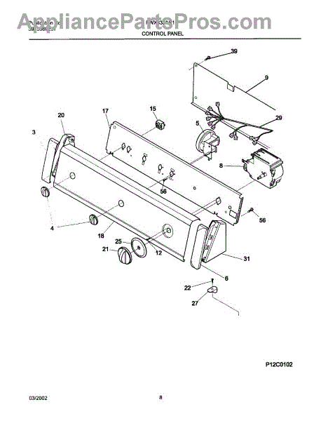 Parts for Frigidaire FWX833AS1: 09 - Control Panel Parts