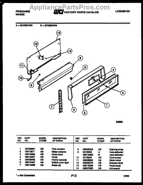 Parts for Frigidaire GC32BCW4: 02 - Control Panel Parts