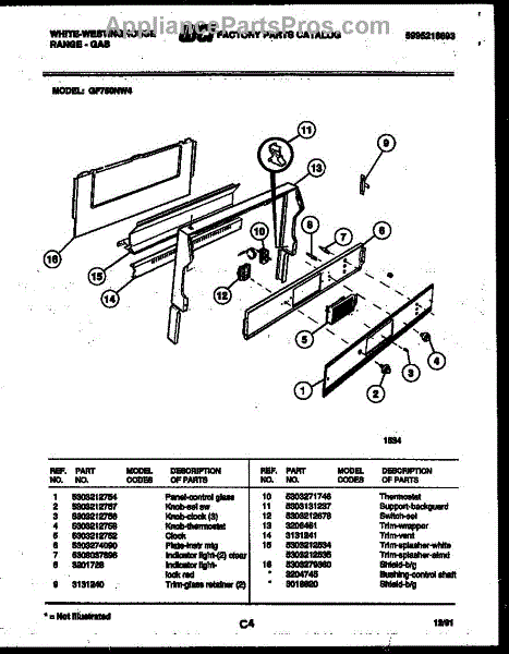Parts for Frigidaire GF750NW4: 02 - Control Panel Parts