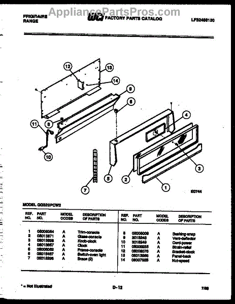 Parts for Frigidaire GG32BPCW2: 02 - Control Panel Parts