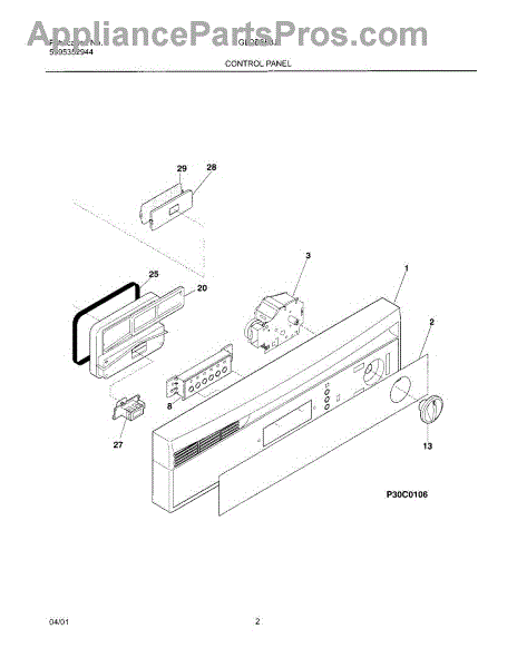 Parts for Frigidaire GLDB653JS2: 03 - Control Panel Parts
