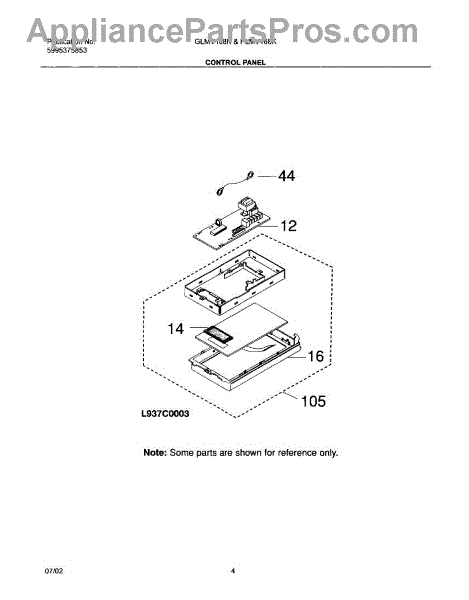 Parts for Frigidaire GLMV168KQ4: 05 - Control Panel Parts