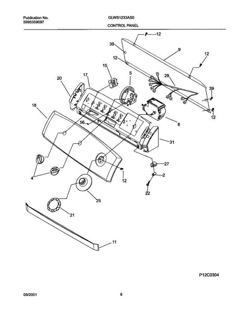 Parts for Frigidaire GLWS1233AS0: 09 - Control Panel Parts