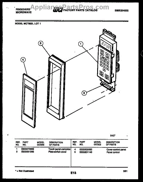 Parts for Frigidaire MCT855L1: 02 - Control Panel Parts