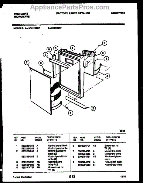 Parts for Frigidaire MVH1190P: 08 - Control Panel Parts