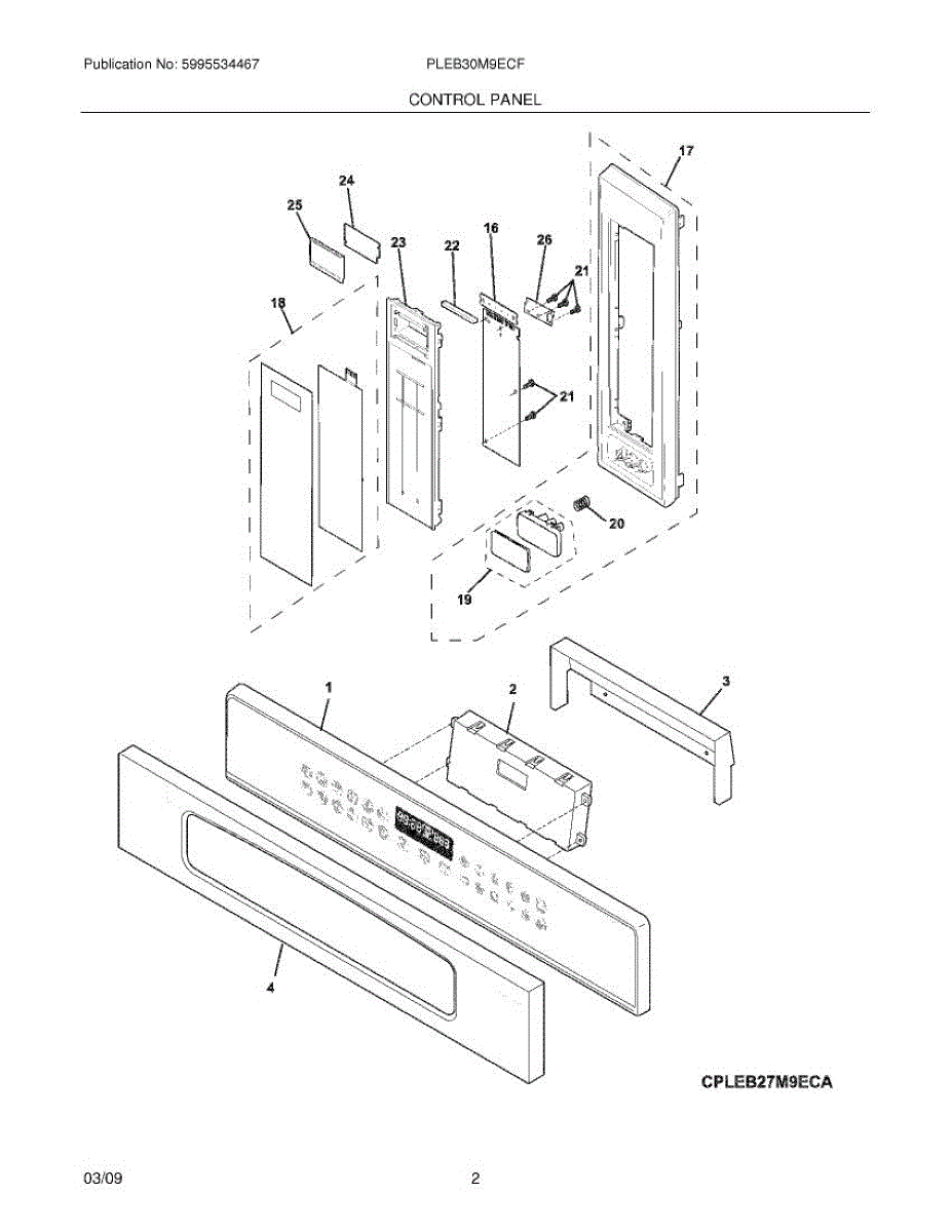 Control panel touch pad assembly for wall ovens. Replaces cracked, unresponsive, or worn touch pads. Installs on the front control interface panel.