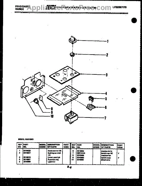 Parts for Frigidaire RBD139D0: 02 - Control Panel Parts