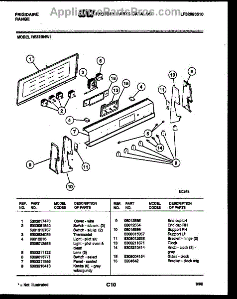 Parts for Frigidaire RE32BNW1: 02 - Control Panel Parts